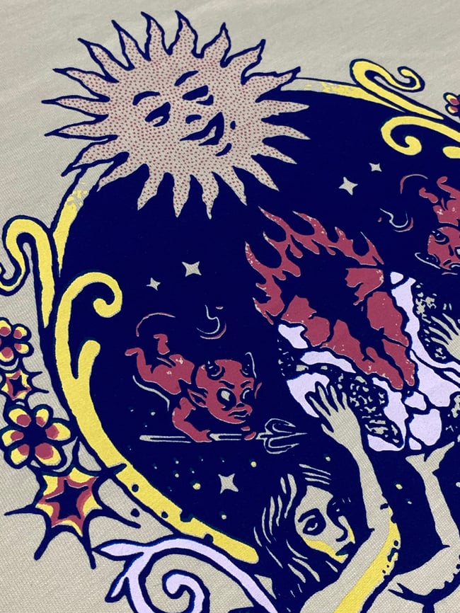 -Hand printed on 6.5oz heavyweight, ultra soft, premium bone colored cotton tees