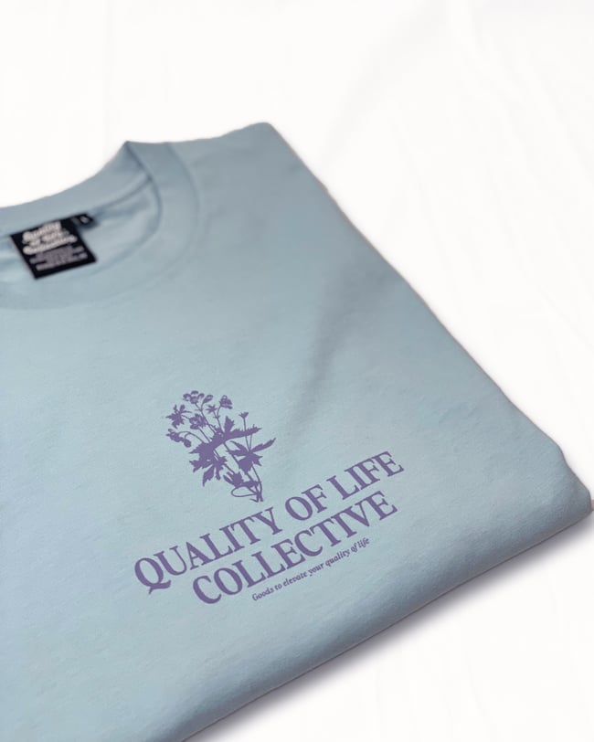 -Hand printed on 6.5oz heavyweight, ultra soft, premium pale blue cotton tees