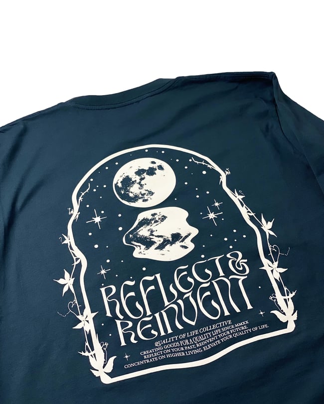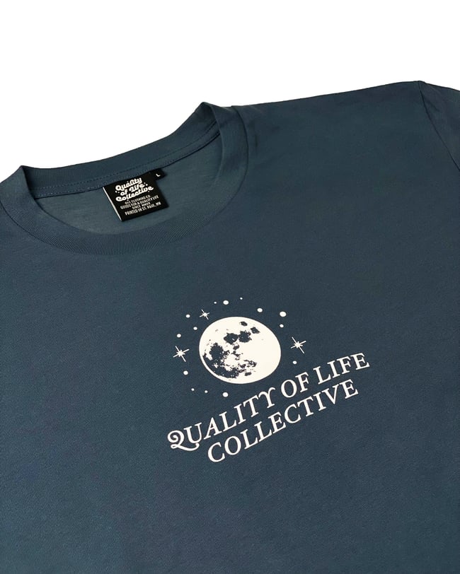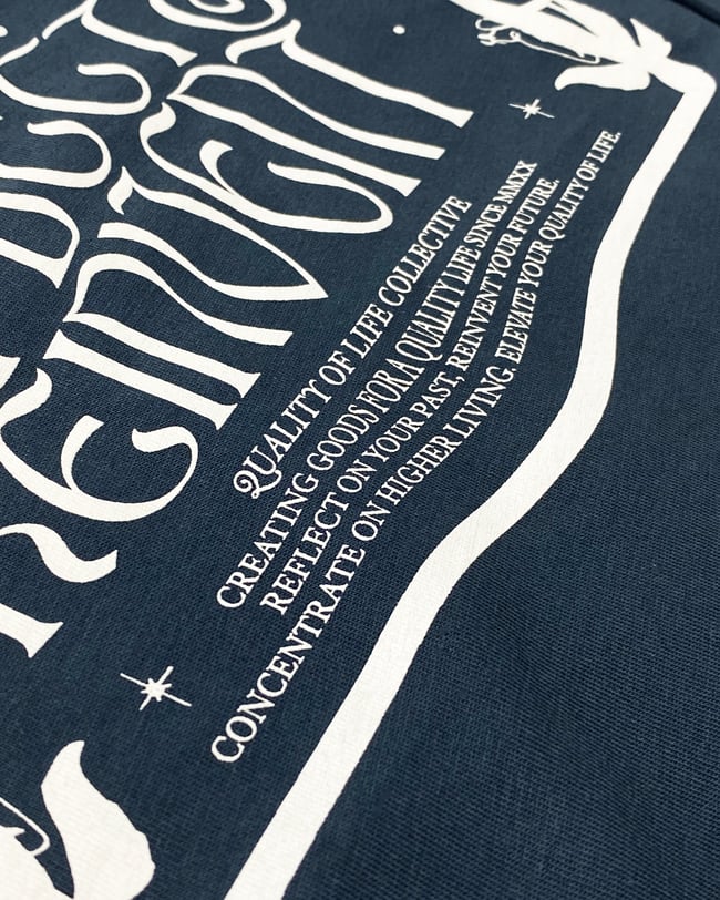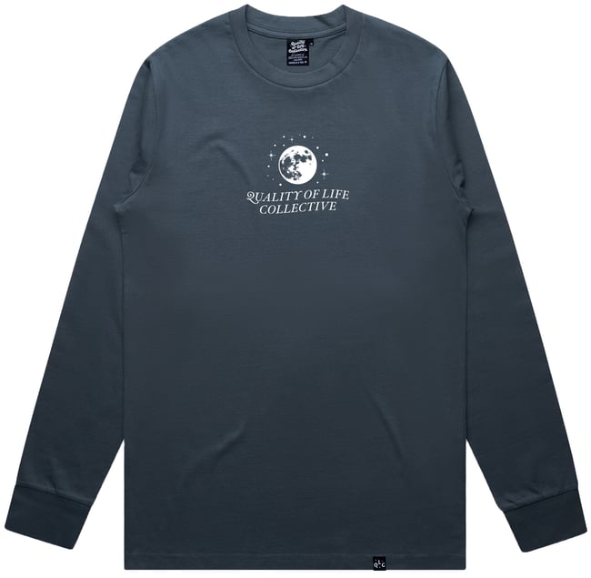 -Hand printed on heavyweight 6.5oz, soft premium petrol blue cotton long sleeves
